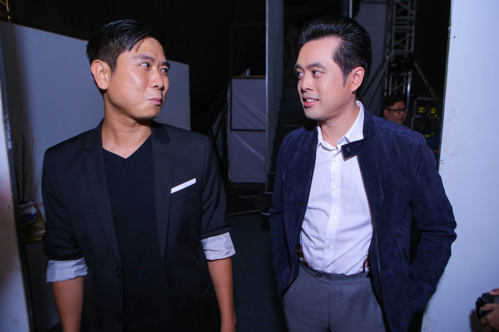 | Giám đốc âm nhạc Hồ Hoài Anh chào hỏi giám khảo khách mời Dương Khắc Linh. Họ thân thiết sau khi cùng làm giám khảo The Voice Kids. |