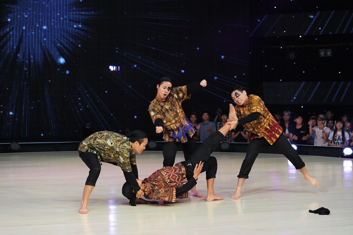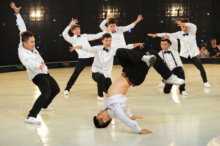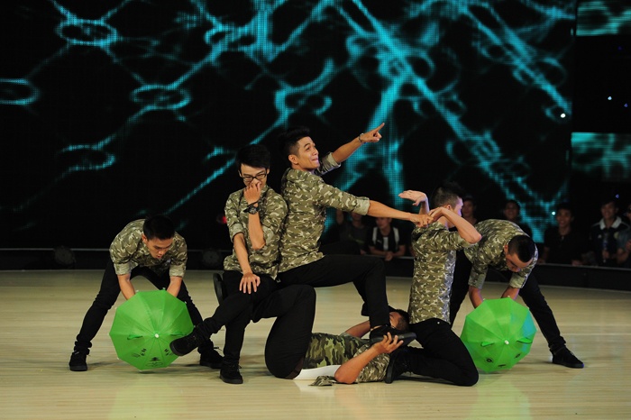 | Hình ảnh phần thi hiphop dàn dựng lỏng lẻo, kém hấp dẫn của nhóm Ngón chân cái. |