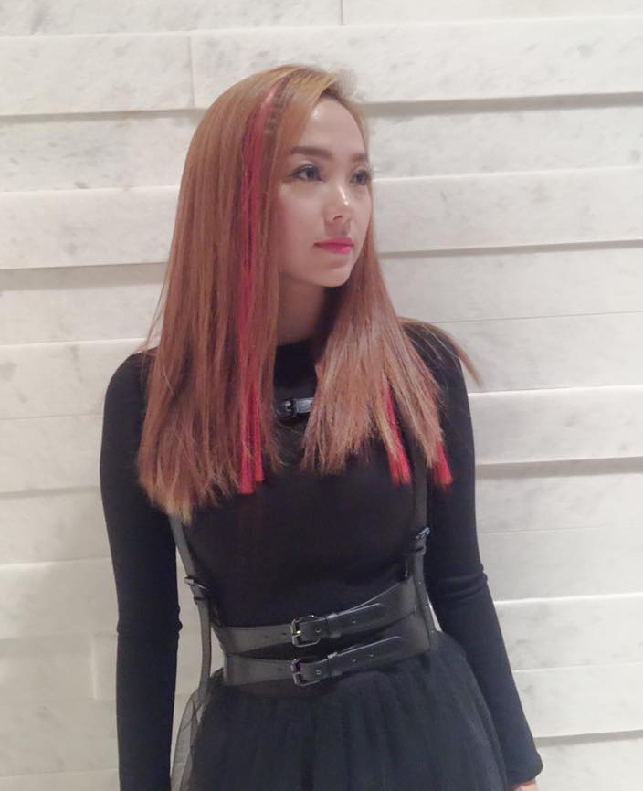 | Đôi lúc cô tăng vẻ cá tính cho mái tóc với những sợi nhuộm màu rực rỡ. |