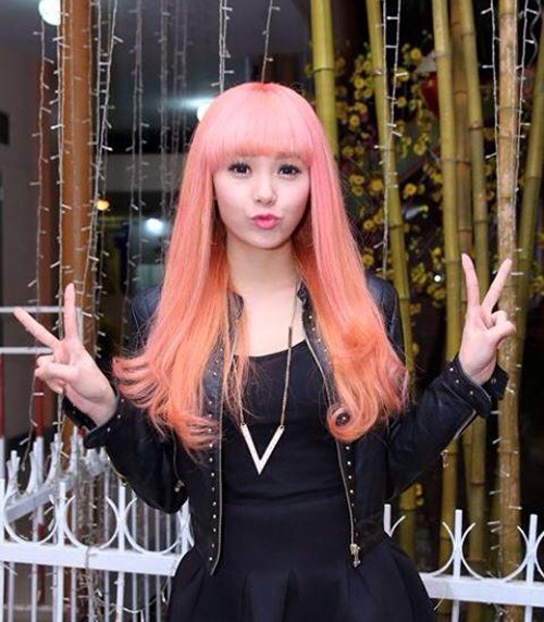 | Tóc nhuộm hồng với mái bằng do không nhận được nhiều lời khen nên cũng chỉ gắn bó với Minh Hằng thời gian ngắn. |