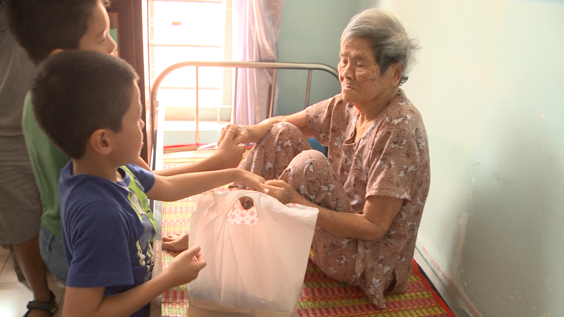 | Tại đây, các bố con cùng hỏi thăm, trao quà tặng cho người già, trẻ nhỏ có hoàn cảnh khó khăn tại trung tâm. |