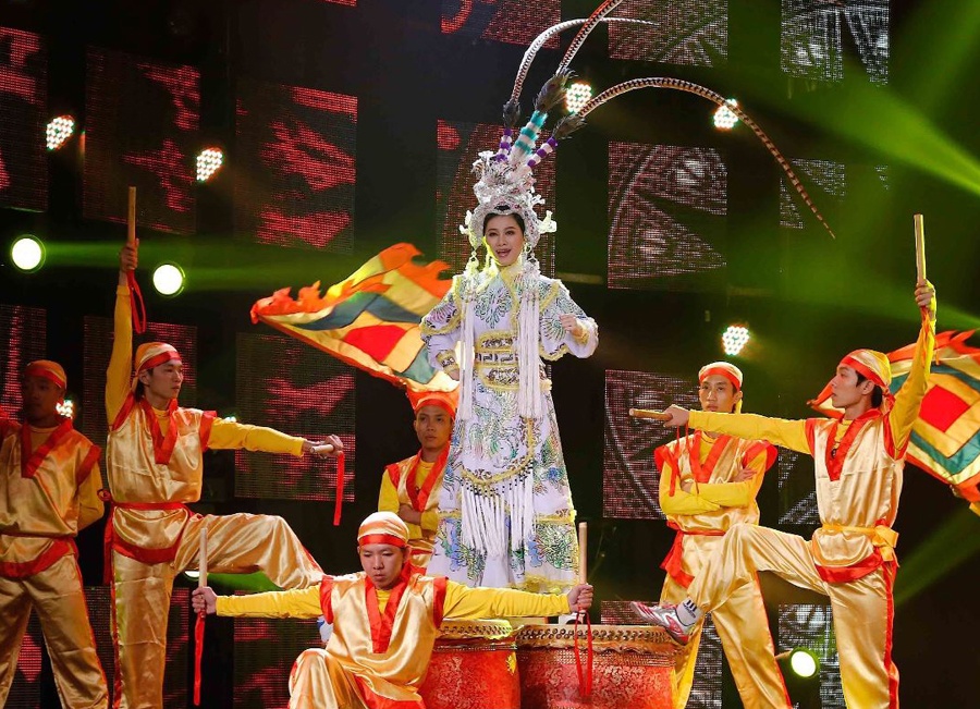 Nghệ sĩ Quế Vân mở đầu cho chương trình bằng một tiết mục kết hợp cùng Hằng Anh Đường với trống, cờ đầy hùng tráng. Ca cảnh Trống lệnh biên thùy đã được tái hiện ấn tượng, tràn đầy tình yêu quê hương, đất nước.