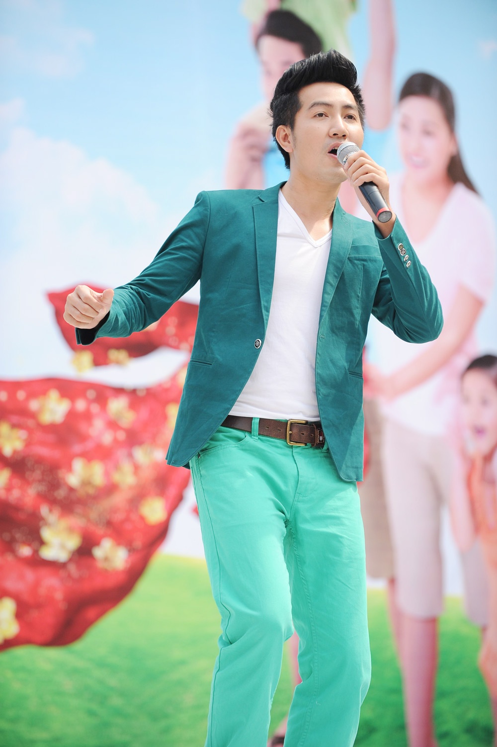 Nam ca sĩ điển trai khuấy động không khí ngày Tết. Anh thu hút khán giả bằng vẻ ngoài giản dị, thân thiện. |