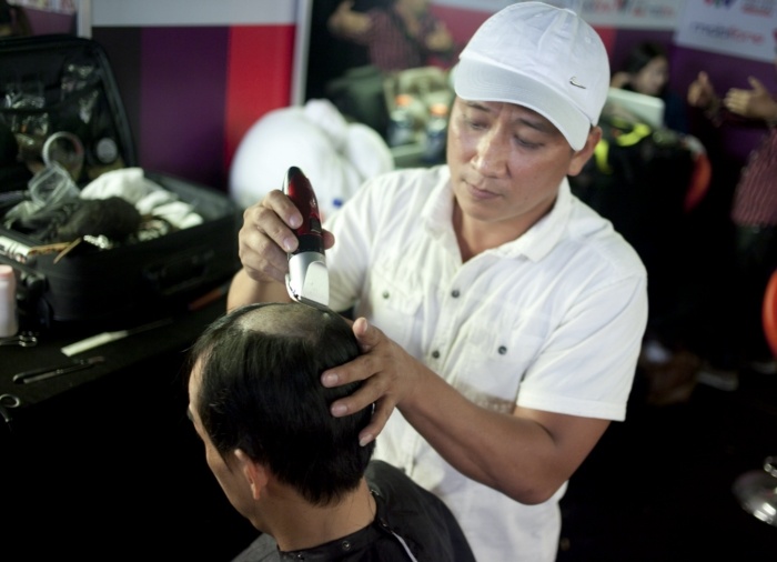 | Minh Thuận phải hy sinh mái tóc của mình để hoá thân thành nhân vật một cách giống nhất có thể. |