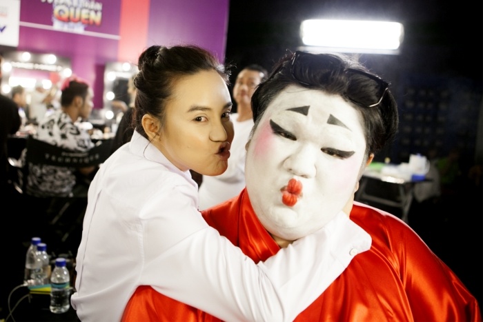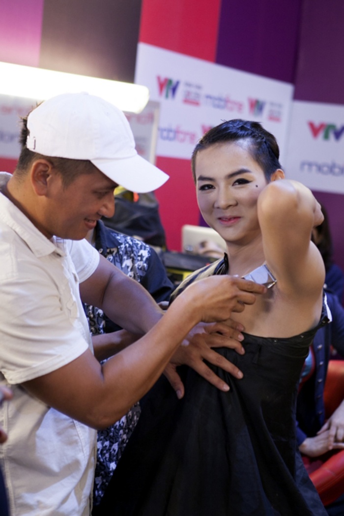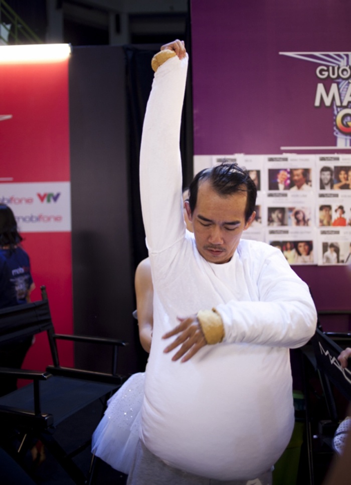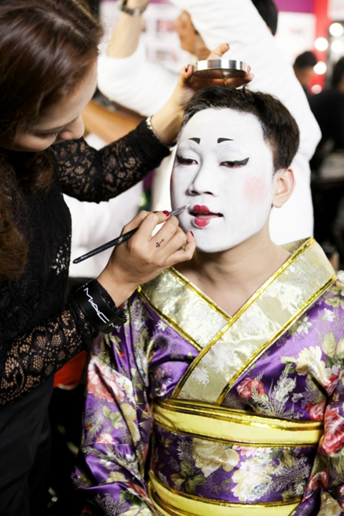 | Hoài Lâm được chăm sóc cẩn thận trước khi ra sân khấu biểu diễn. |