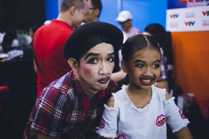 | Tuần này, anh tạm rời xa cậu con nuôi để dự thi cùng thí sinh nhí Bảo An. Nam ca sĩ cho biết: "Bảo An rất bản lĩnh vì cô bé không hề sợ xấu khi vào vai này. Đặc biệt trong quá trình luyện tập, bé đã thực hiện rất tốt nên tôi rất hồi hộp chờ đợi ngày tiết mục được ra mắt khán giả". |