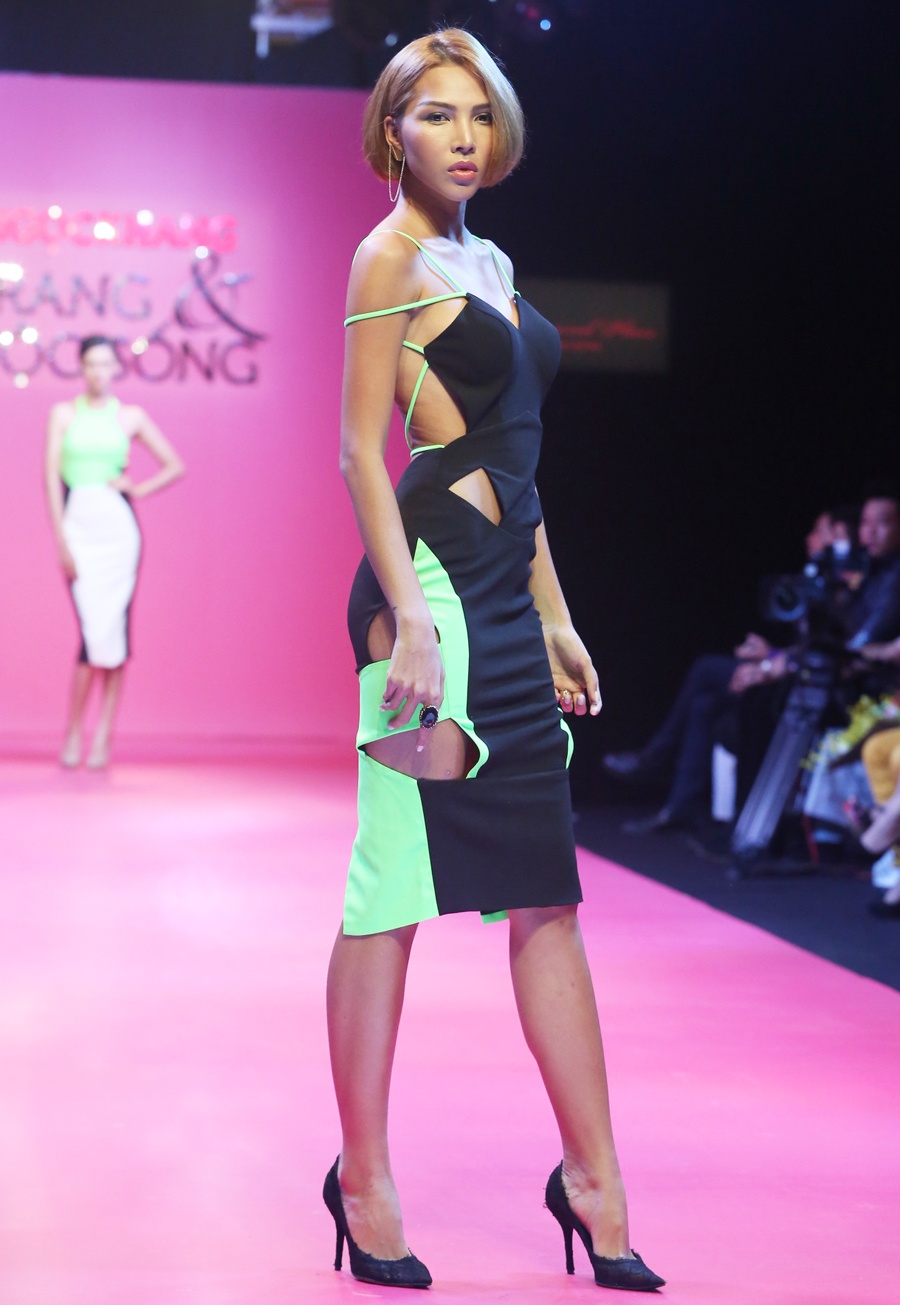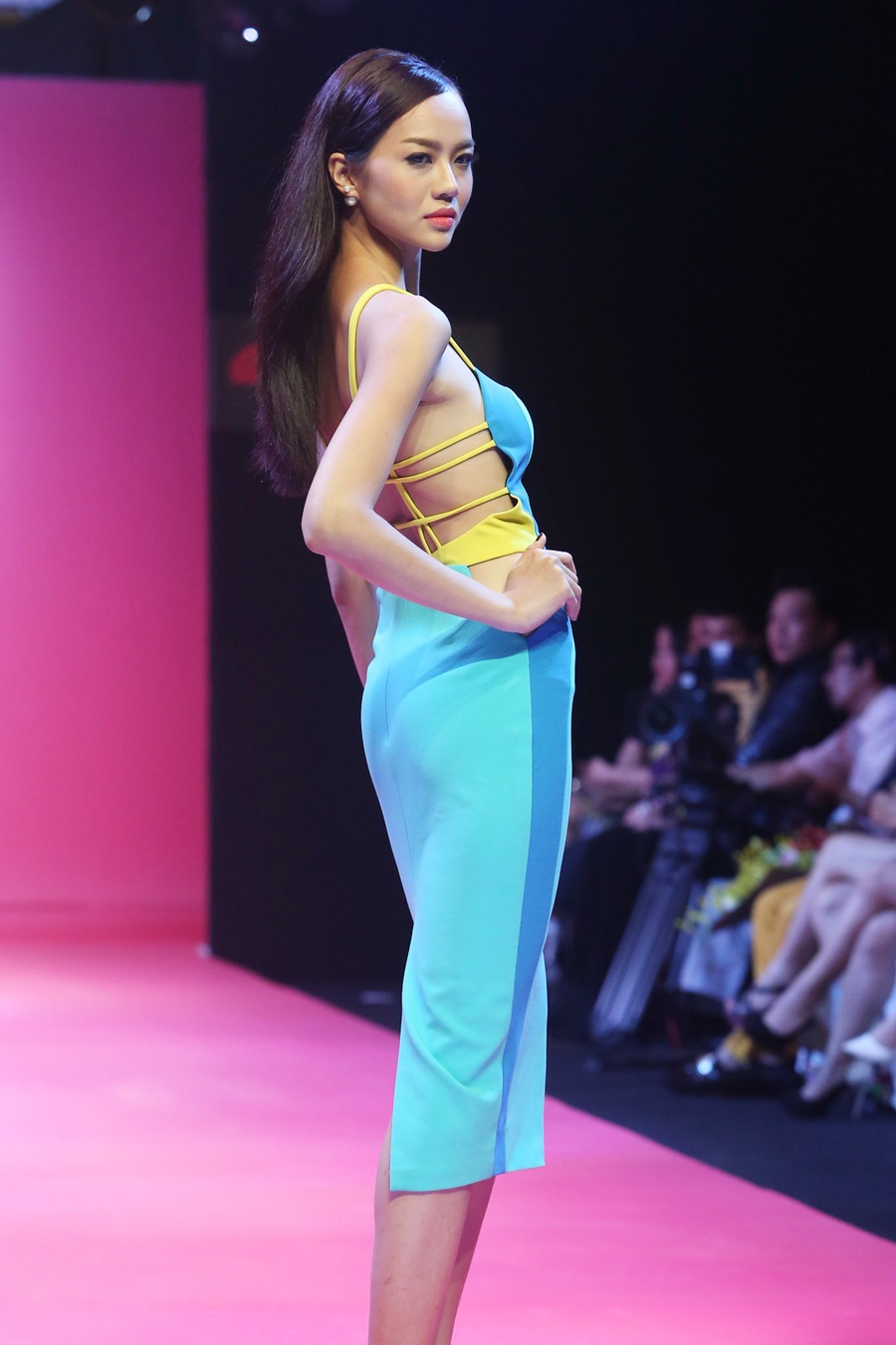 | Chà Mi Next Top Model cũng tham gia sàn diễn tháng 5. Nữ người mẫu thể hiện phong cách chuyên nghiệp khi trình diễn thiết kế cut-out hợp trào lưu hè. |