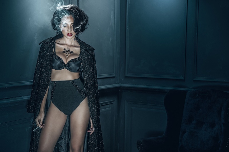 | Sở hữu làn da ngăm khỏe khoắn, Minh Triệu được yêu cầu diện những chiếc đầm voan ren mỏng, nội y táo bạo... Với khả năng biến hóa xuất thần, Minh Triệu nhanh chóng lĩnh hội được yêu cầu của ê-kíp, cô nhập vai thành công hình tượng cô gái lẳng lơ diện nội y kiêu sa mê hoặc mọi ánh nhìn. |