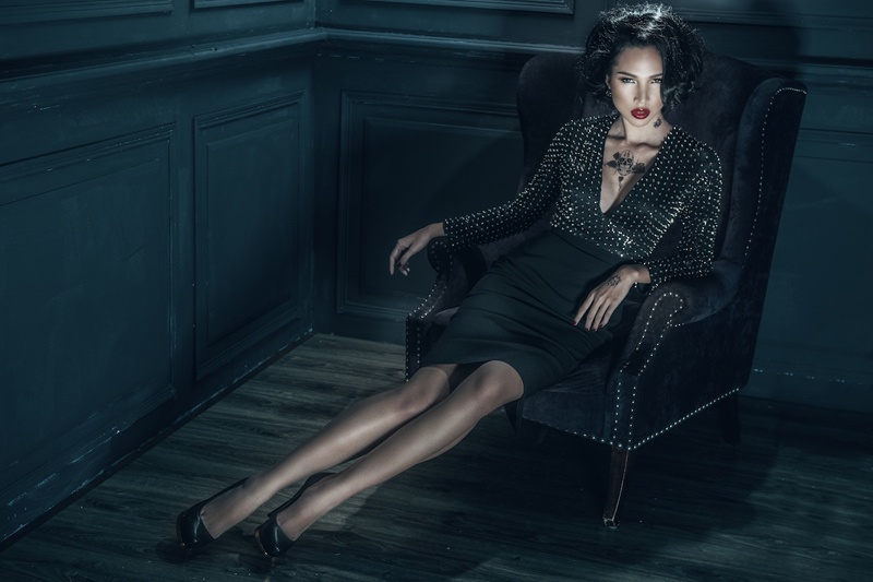 Trong bộ ảnh mới, người mẫu cá tính không ngại ngần diện nội y, khoe số đo ba vòng nóng bỏng kèm những hình xăm cá tính trên làn da nâu quyến rũ.