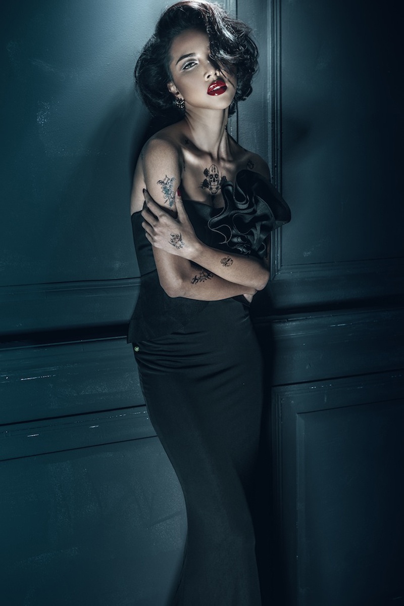 | Bộ ảnh giới thiệu những thiết kế thời trang mới, bao gồm nội y, váu dạ hội, trang phục cá tính. Với biểu cảm lạnh lùng, bất cần, Minh Triệu thể hiện tốt yêu cầu đặt ra. Điểm độc đáo thú vị nữa là trên phần tay, ngực của người mẫu được tô vẽ mô phỏng hình xăm rất công phu và lạ mắt. |