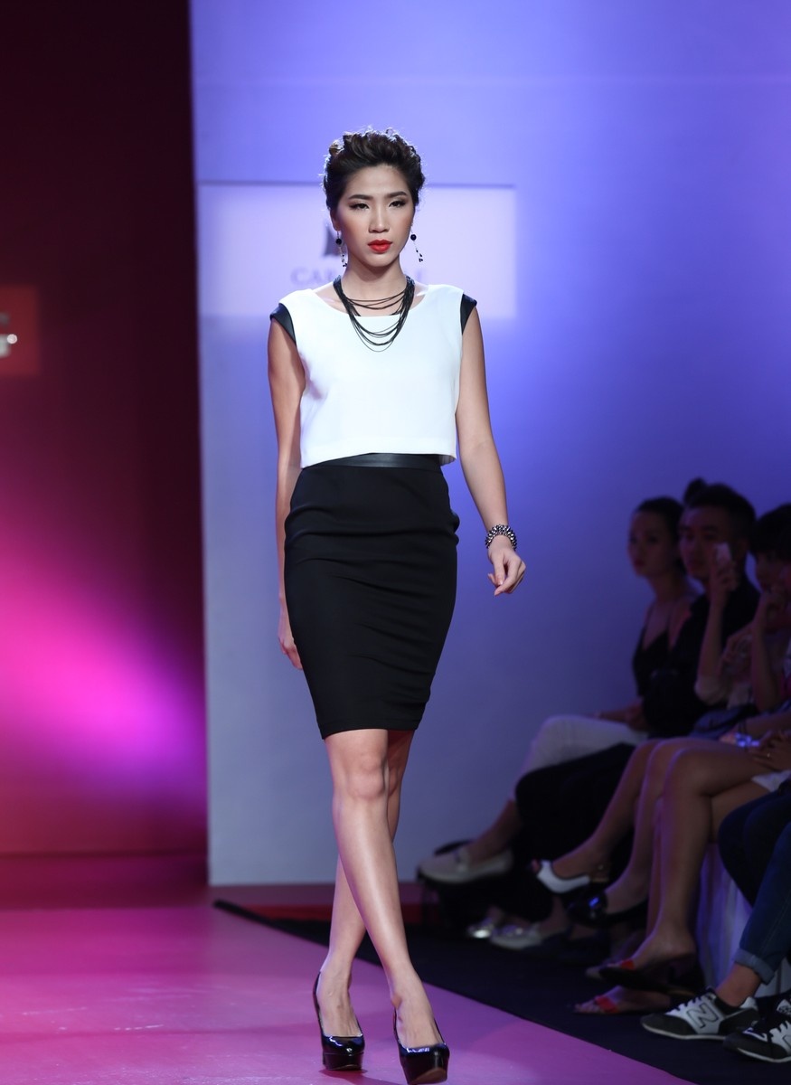Tông màu trắng đen thanh lịch với dáng ôm gợi cảm.
