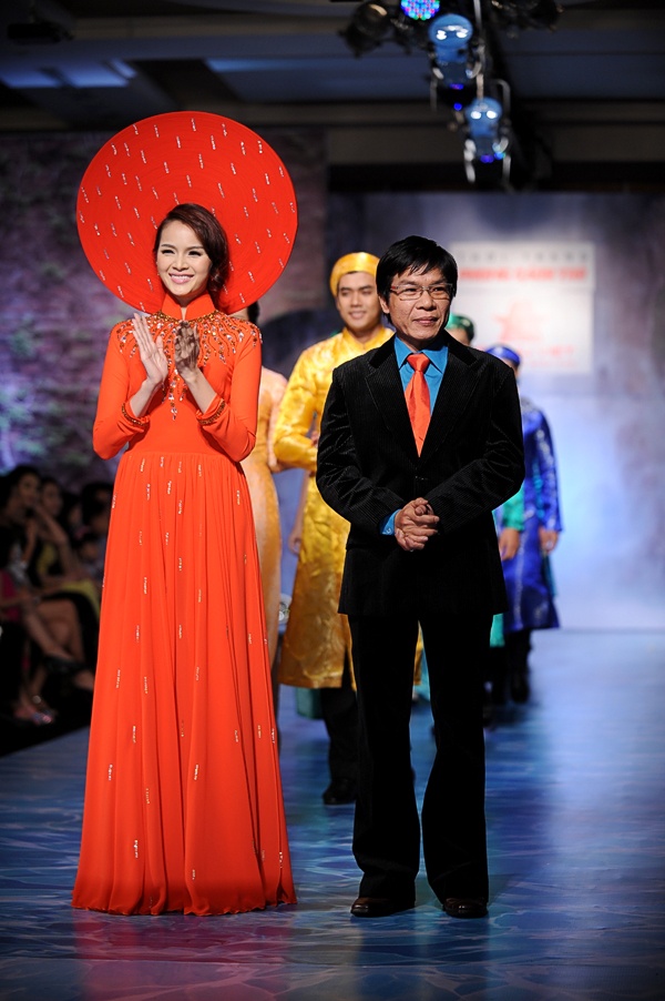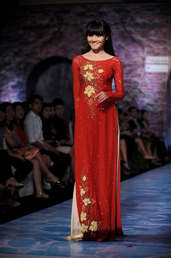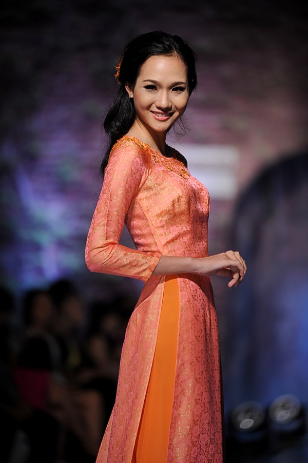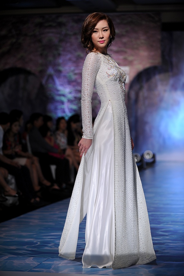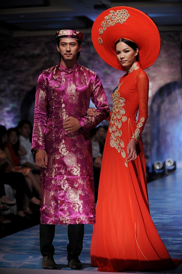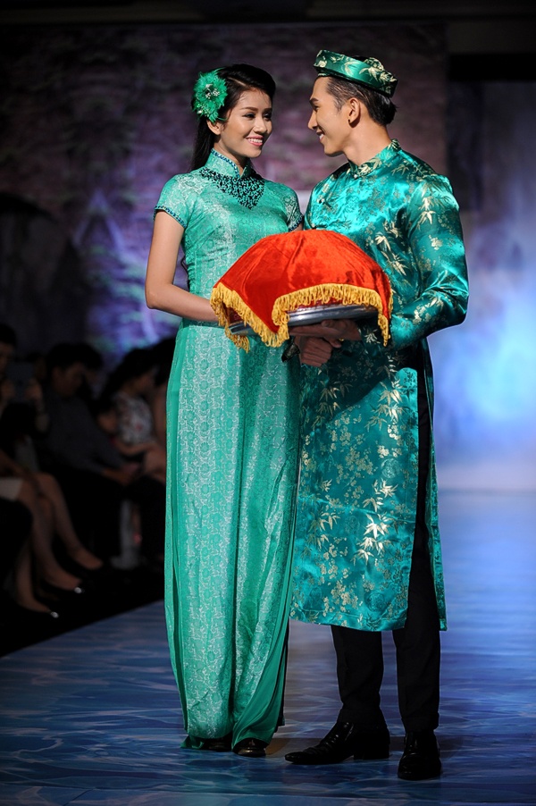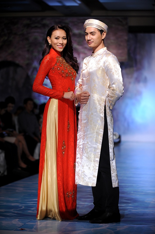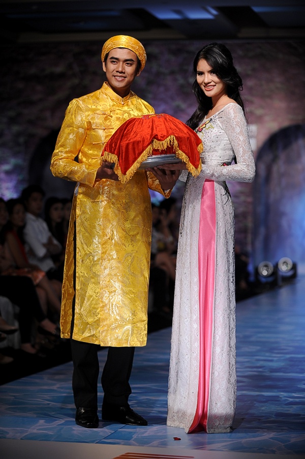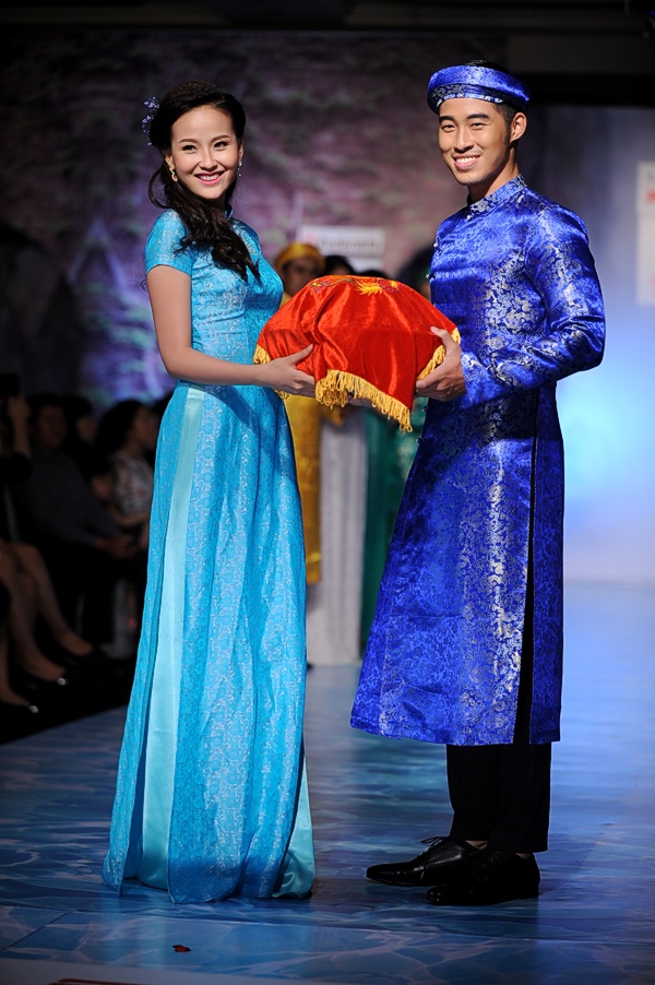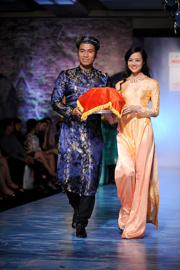 Tối 11/11, cặp người mẫu tham gia trình diễn màn trang phục áo dài cưới hỏi tại chương trình Phong cách trẻ, diễn ra ở TP.HCM.