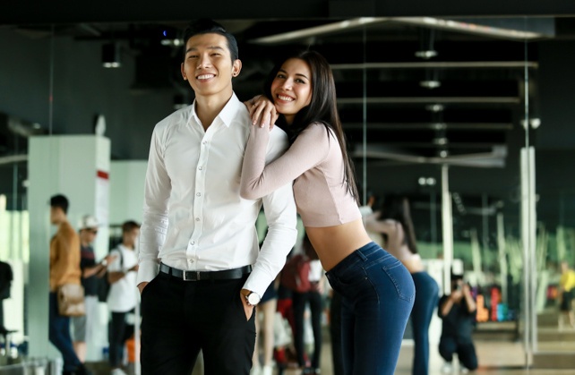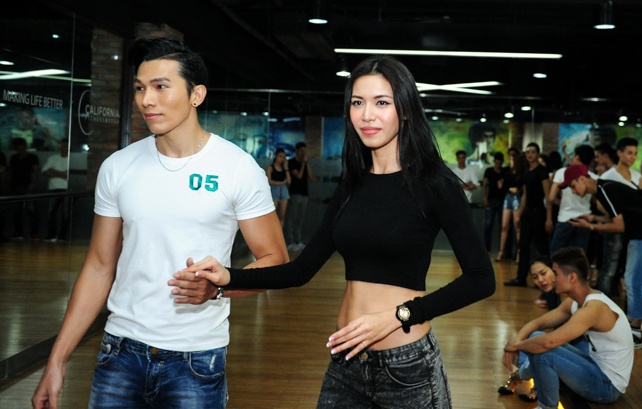 Cặp đôi người mẫu nổi tiếng tận tình chỉ dạy đàn em trong cuộc thi Siêu mẫu Việt Nam 2015.