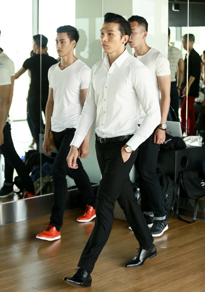 | Cả hai nhiệt tình chia sẻ kinh nghiệm, hướng dẫn và chỉnh cho thí sinh những điều nhỏ nhất, từ dáng đứng, cách đi, cách vung tay, cho đến ánh mắt... |