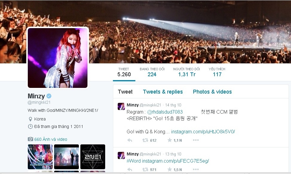 | Minzy xóa và lại bổ sung "2NE1" vào tài khoản Twitter và Instagram trong vòng vài tiếng. |