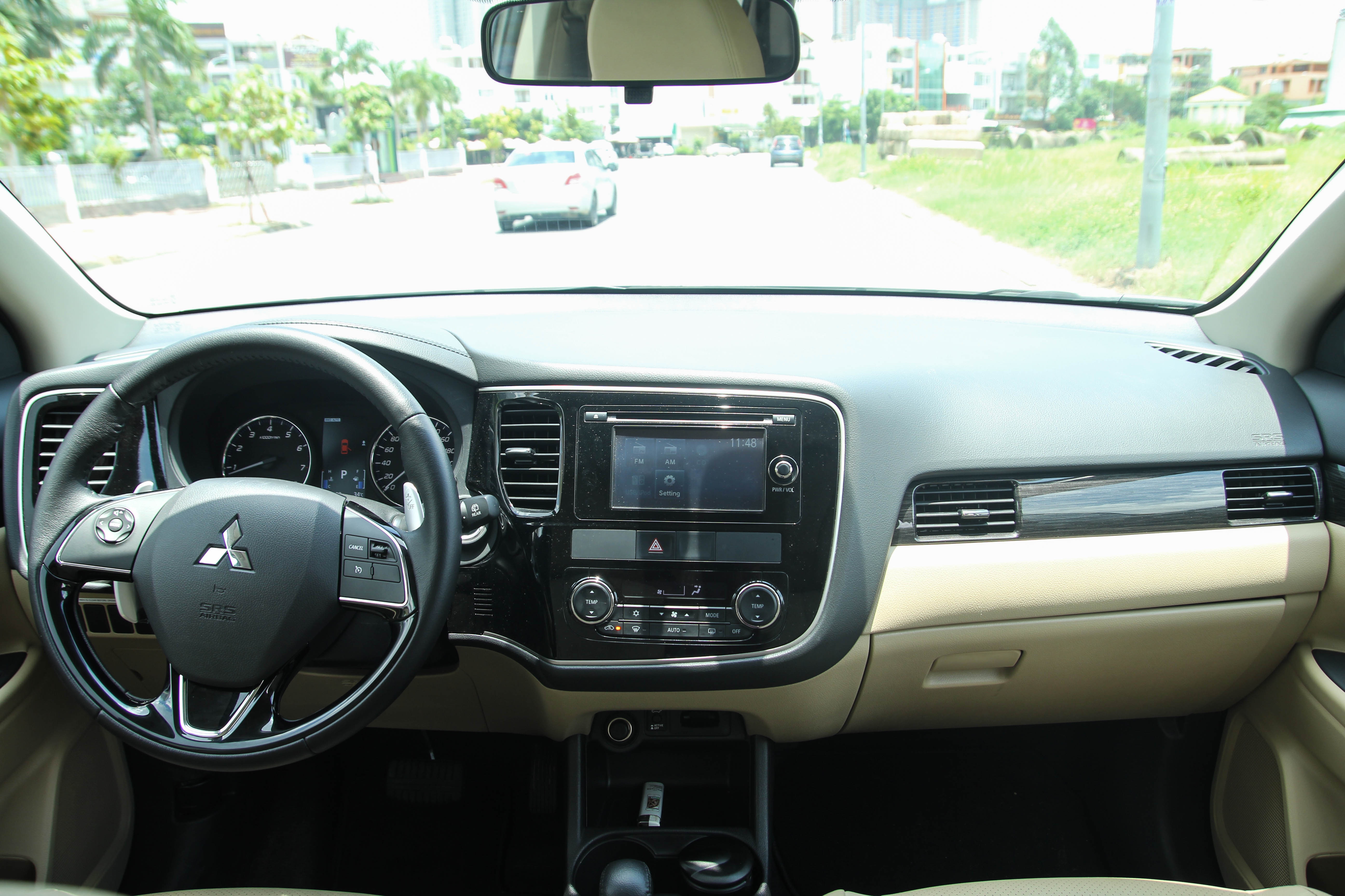 Vị trí tuyệt vời nhất bên trong cabin là khu vực dành cho người lái. Outlander dành sự ưu tiên nhất ở vị trí này. Ghế lái chỉnh điện 8 hướng, các nút điều khiển trong tầm tay, màn hình cảm ứng với giao diện dễ sử dụng. Các nút bấm điều chỉnh âm lượng, menu được tích hợp trên tay lái.
