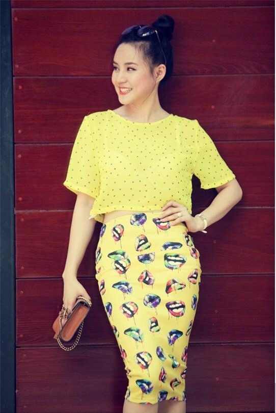 | Chiếc áo crop top làm mưa làm gió trong 2 năm gần đây vẫn được đánh giá cao vì cách mix đồ hiệu quả. Bạn có thể mix kèm váy bút chì như Vy Oanh hoặc lựa chọn các kiểu váy xòe, midi, maxi đều rất phù hợp. |