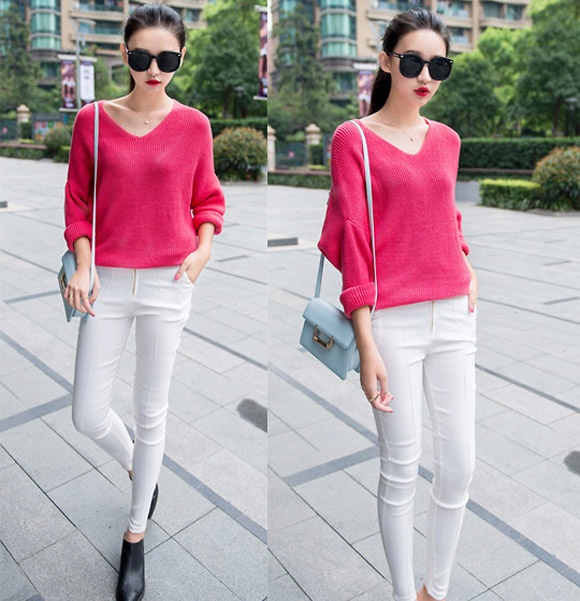 | Skinny trắng mix với áo len màu rực rỡ, tưởng chừng như đơn giản nhưng hiệu quả là rất mỹ mãn. |