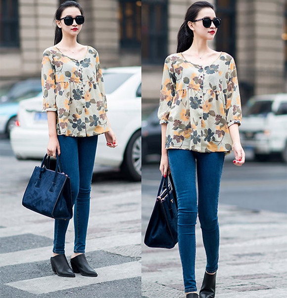 | Một chiếc áo có màu sắc vintage giúp bạn trở nên nhẹ nhàng hơn. Mix cùng với quần skinny, bạn sẽ có vẻ ngoài thật dễ thương. |