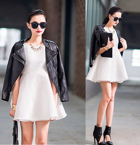 | Những chiếc váy sát nách mang hơi hướng của mùa hè sẽ được mix với áo da để tạo cảm hứng thu cho người mặc. |