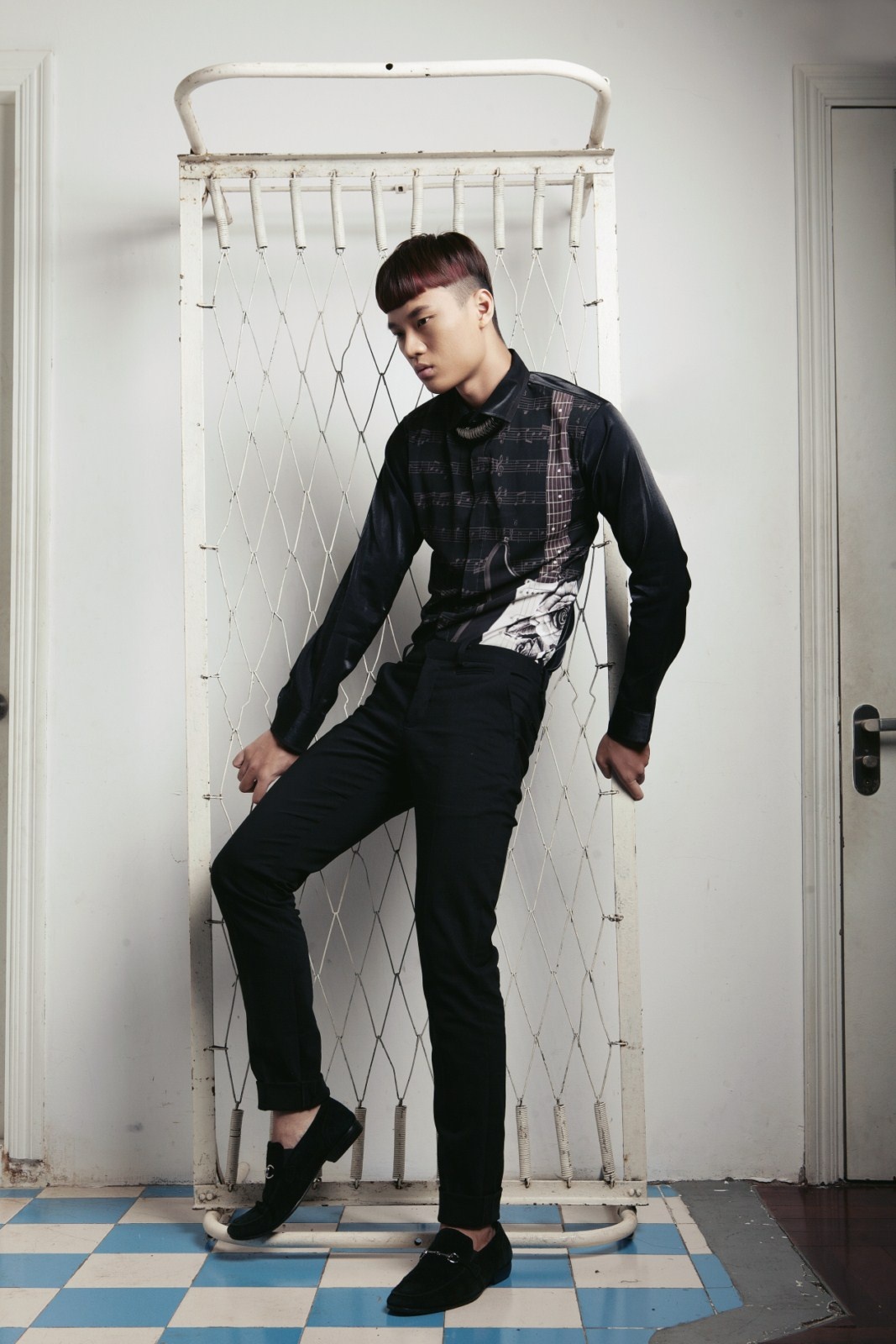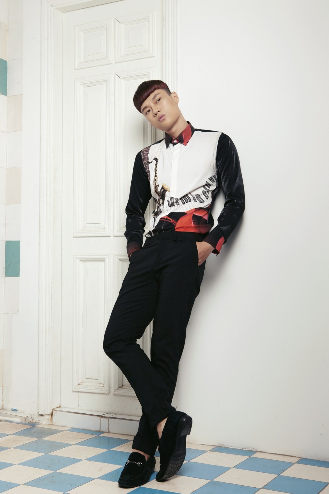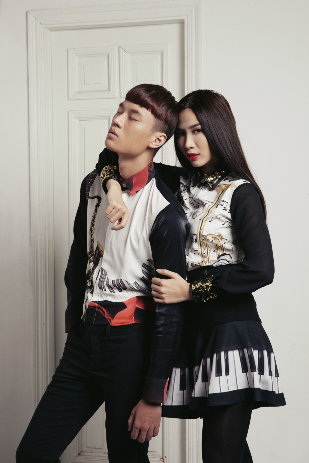 | Đạo cụ âm nhạc được cách điệu tối giản phối hợp ăn ý cùng tông màu trắng đen. |