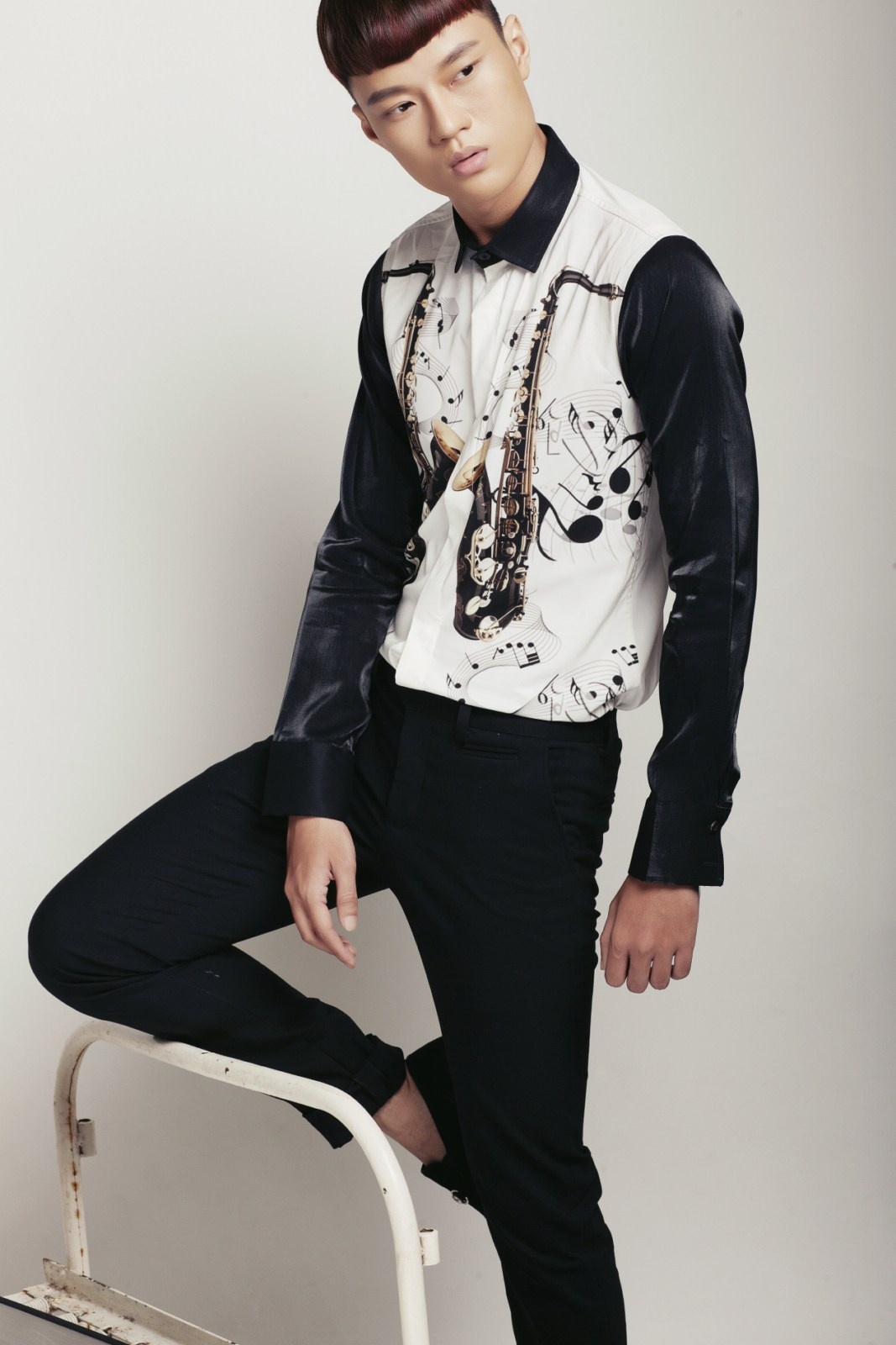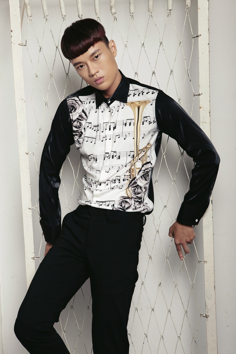 | Họa tiết nốt nhạc được in trên áo sơ-mi dành cho nam. |