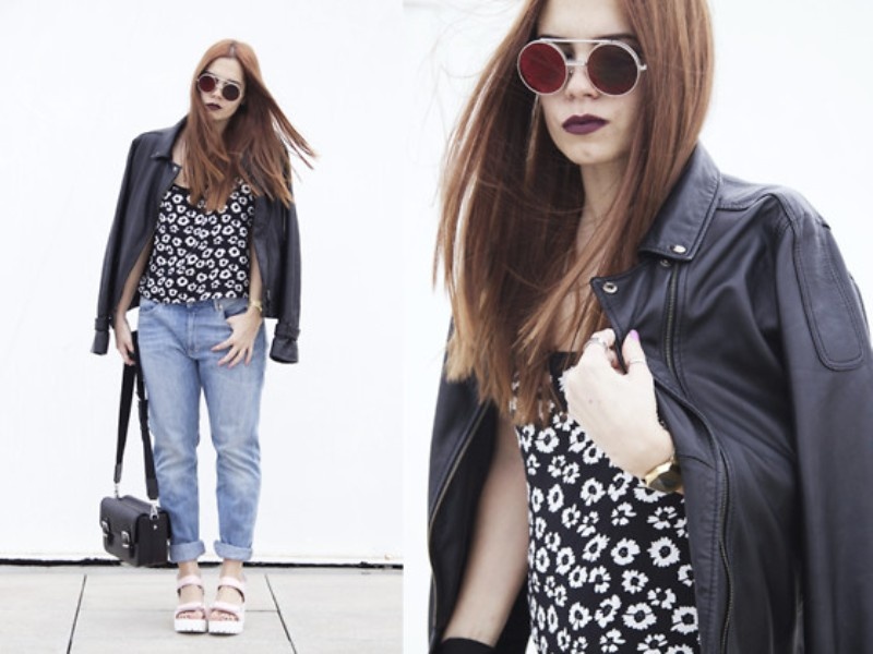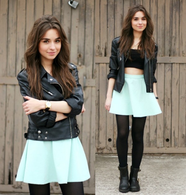 Những chiếc váy nhẹ nhàng nay trở nên đặc biệt cá tính khi được mix cùng boots và áo khoác da.