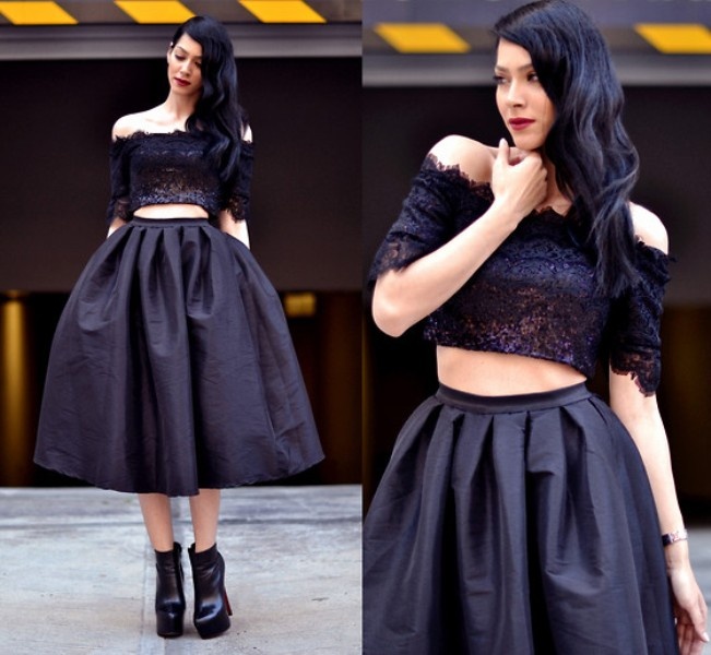 Những chiếc váy xoè khi đi cùng áo crop top ren cũng tạo được nét sang trọng và quyến rũ.