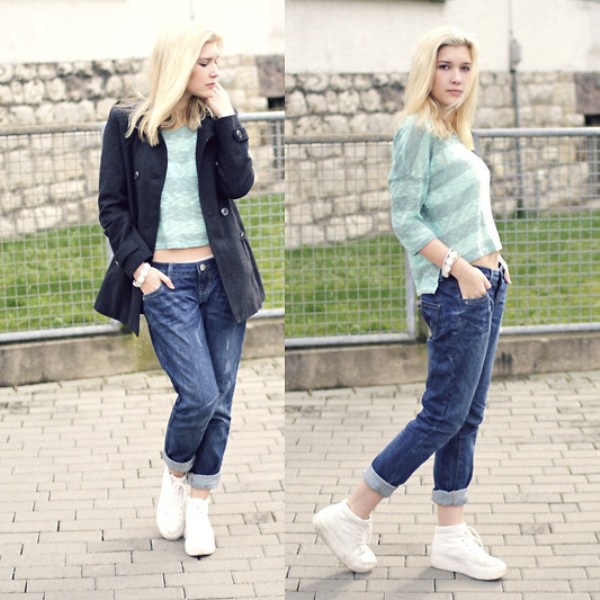 Những chiếc quần jeans theo phong cách boyfriend cũng khá được ưa thích trong mùa này. Được thiết kế rộng hơn hẳn chiếc quần jeans bình thường, quần jeans boyfriend đem đến bạn gái vẻ ngoài cực bụi bặm khi kết hợp với nhiều trang phục khác nhau.