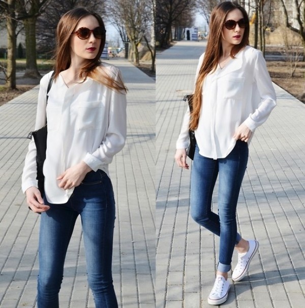 | Sự kết hợp tinh tế nhưng khá đơn giản giữa áo thun và quần jeans cũng tạo nên nét thanh lịch cho các bạn gái. |
