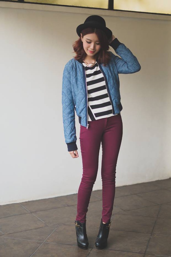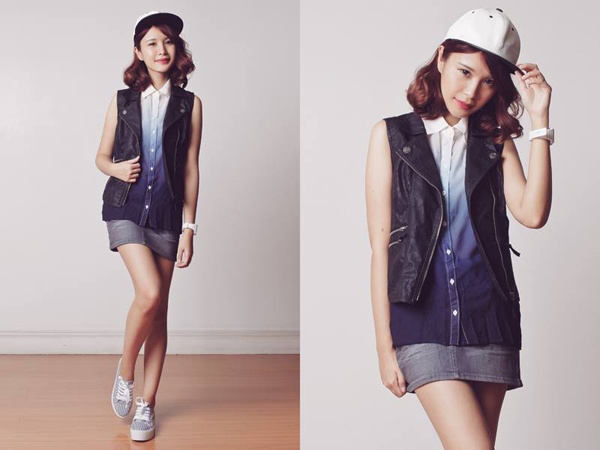 Ngoài những chiếc váy nhẹ nhàng, skinny cũng là trang phục không thể thiếu trong tủ quần áo của cô gái này. |