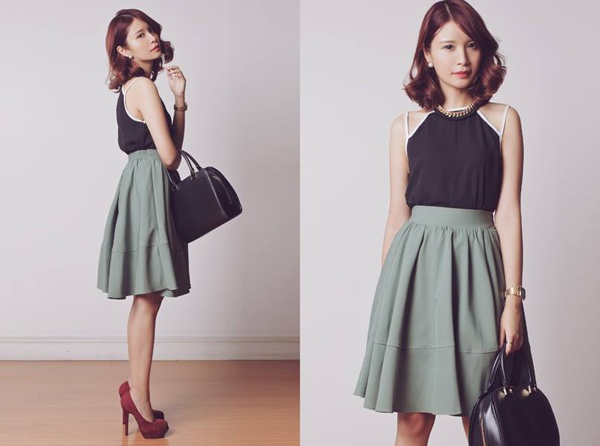 hay thanh lịch với sơ mi cùng váy chữ A. |