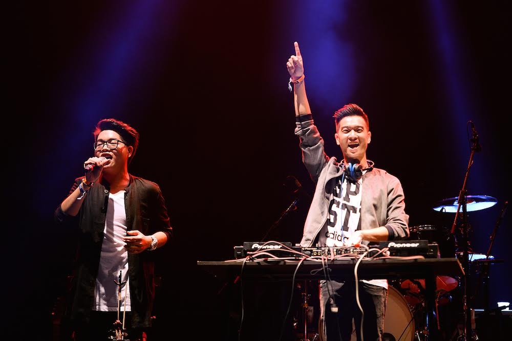 | Quán quân Giọng hát Việt 2015 Đức Phúc trình diễn cùng SlimV. |