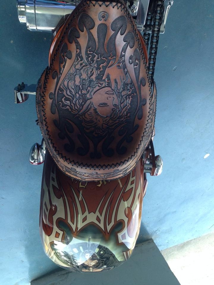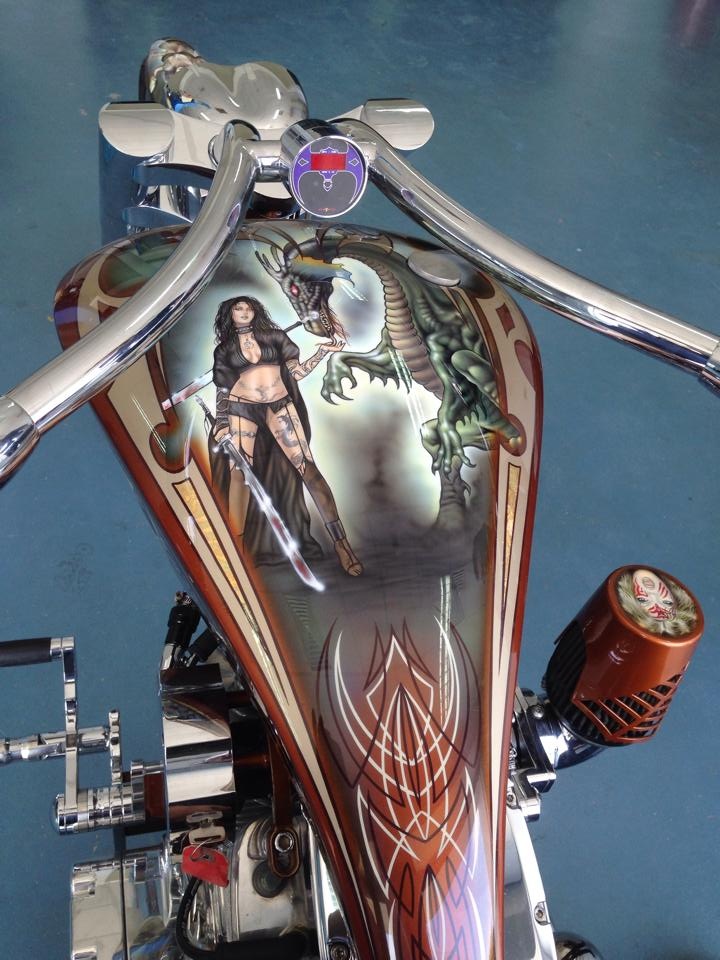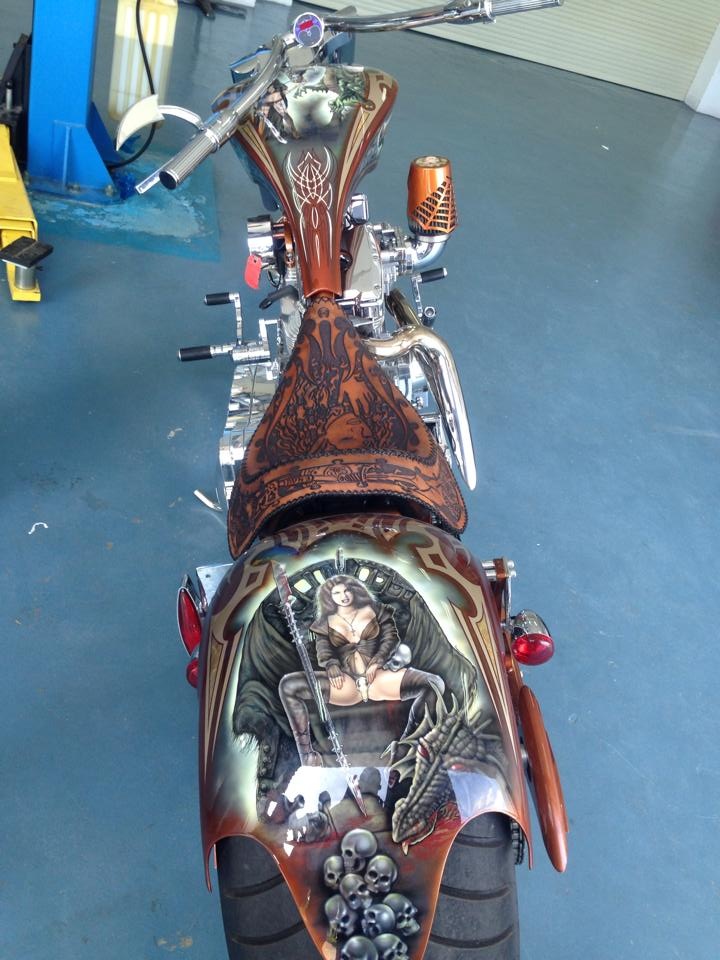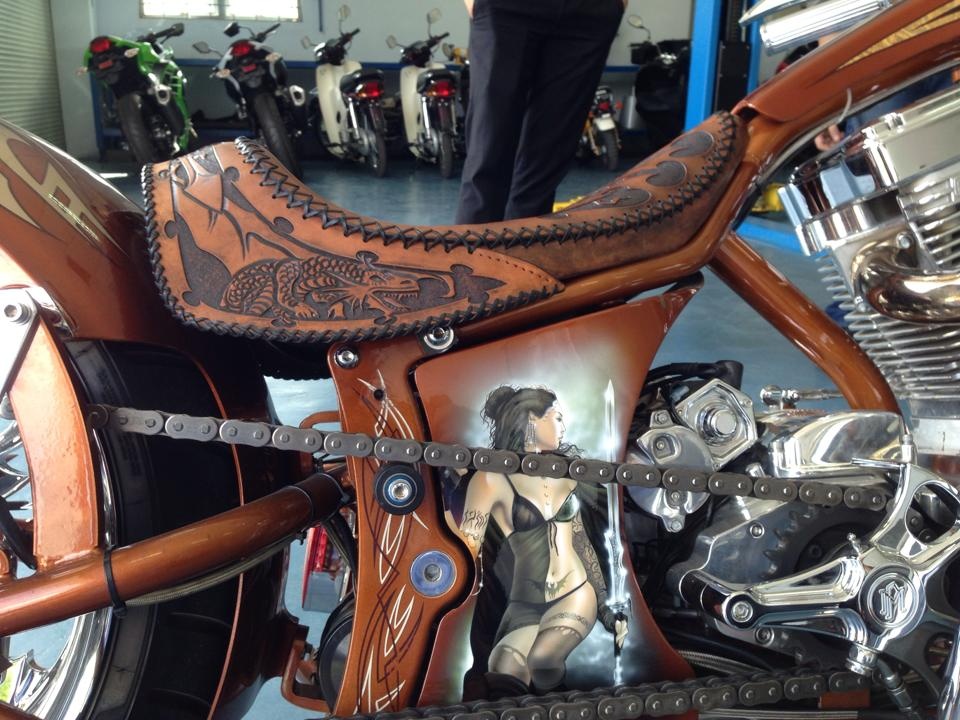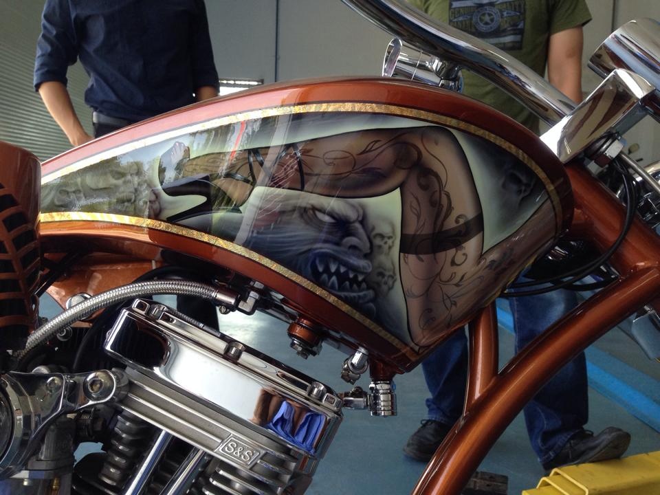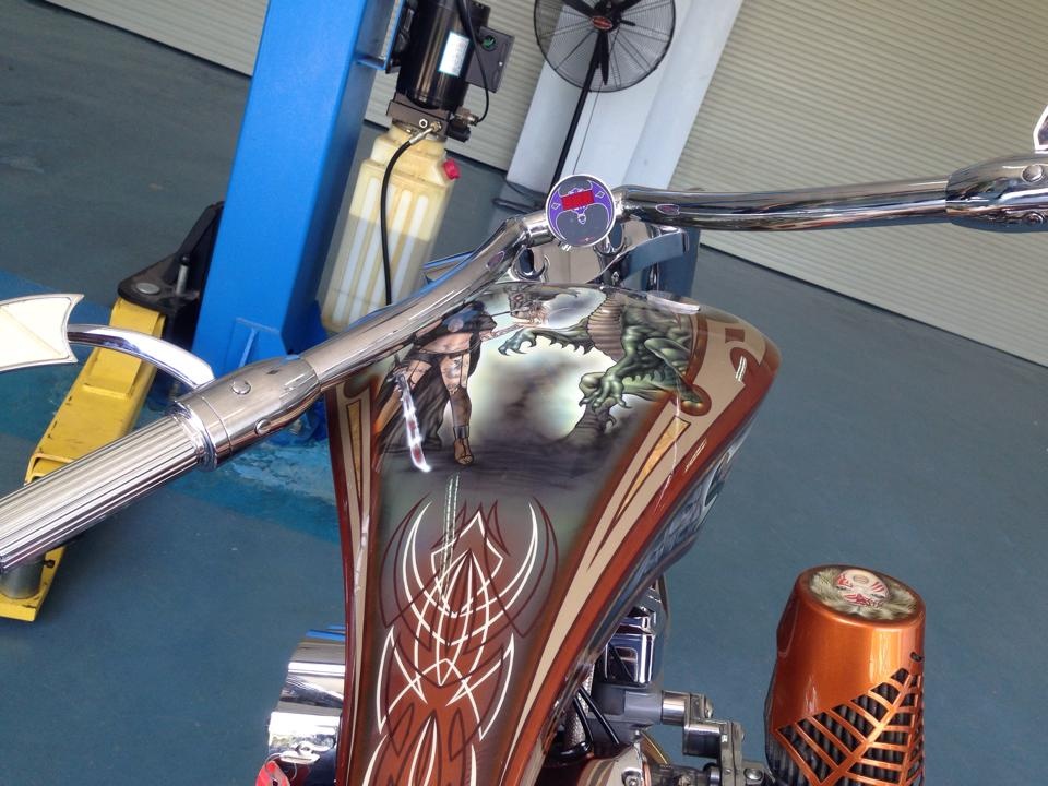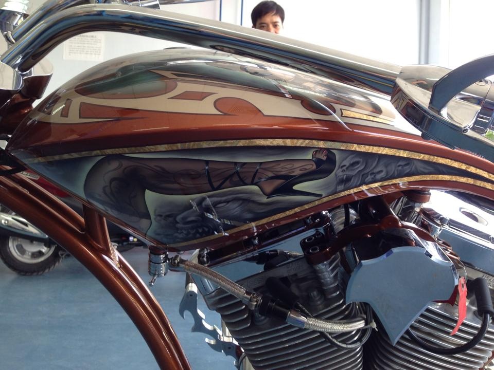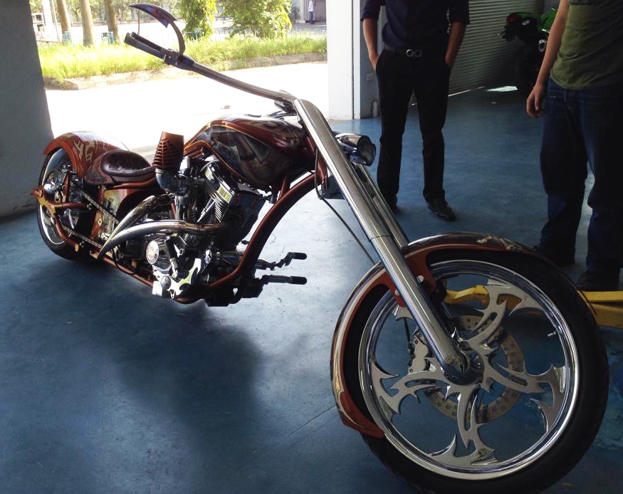 Mẫu chopper độc đáo này được một người chơi xe tại Hà Nội nhập về. Đây là sản phẩm được nhập khẩu trực tiếp từ Mỹ, được biết đến thông qua một cuộc thi trang trí xe.
