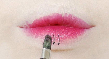 | Dùng chổi tán nhẹ son môi theo chiều từ trên xuống dưới với môi dưới. |