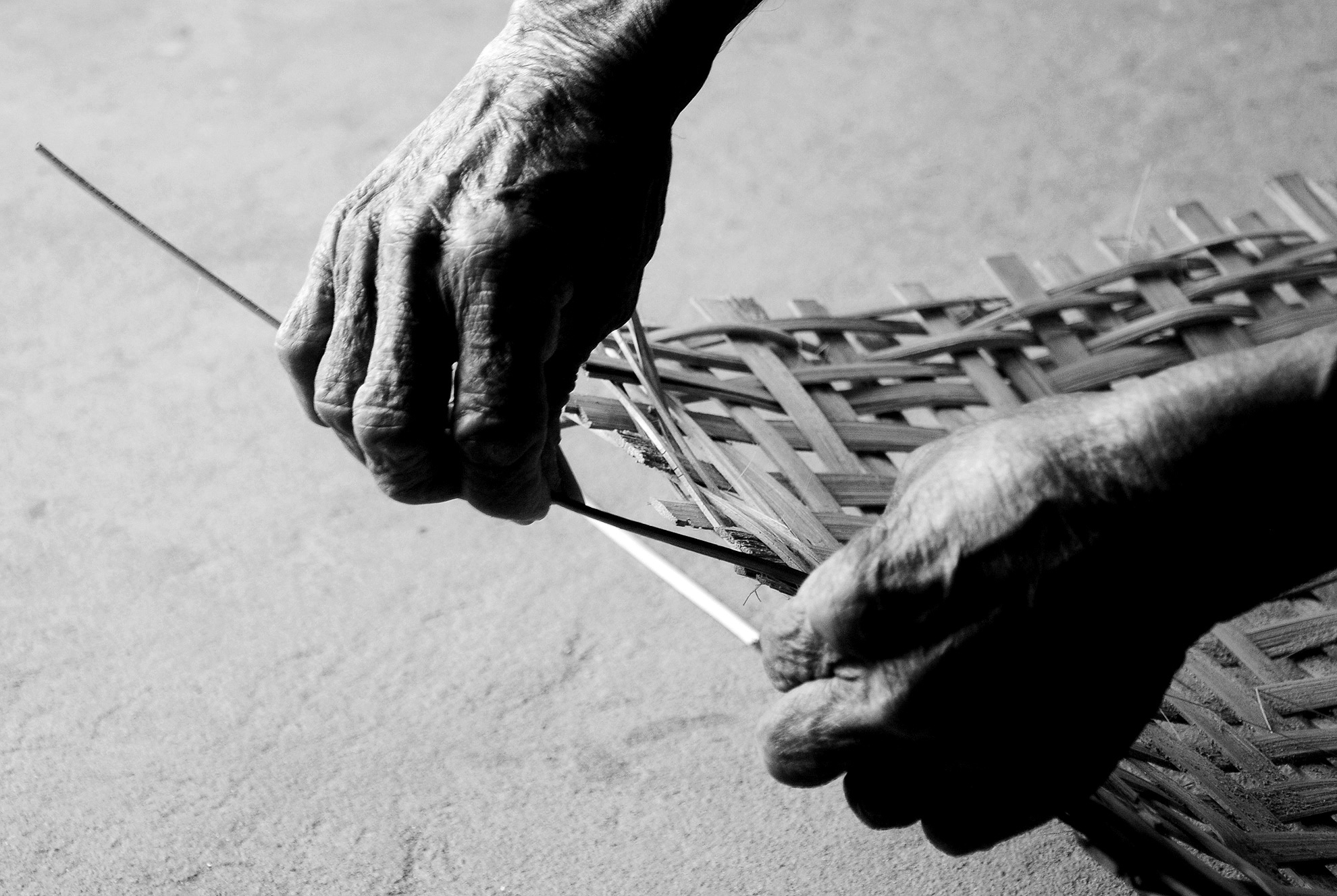 Trải qua năm tháng dài cơ cực, đôi bàn tay cụ Sỏ chai sần, nhăn nheo nhưng vẫn chưa chịu ngừng nghỉ lao động. |