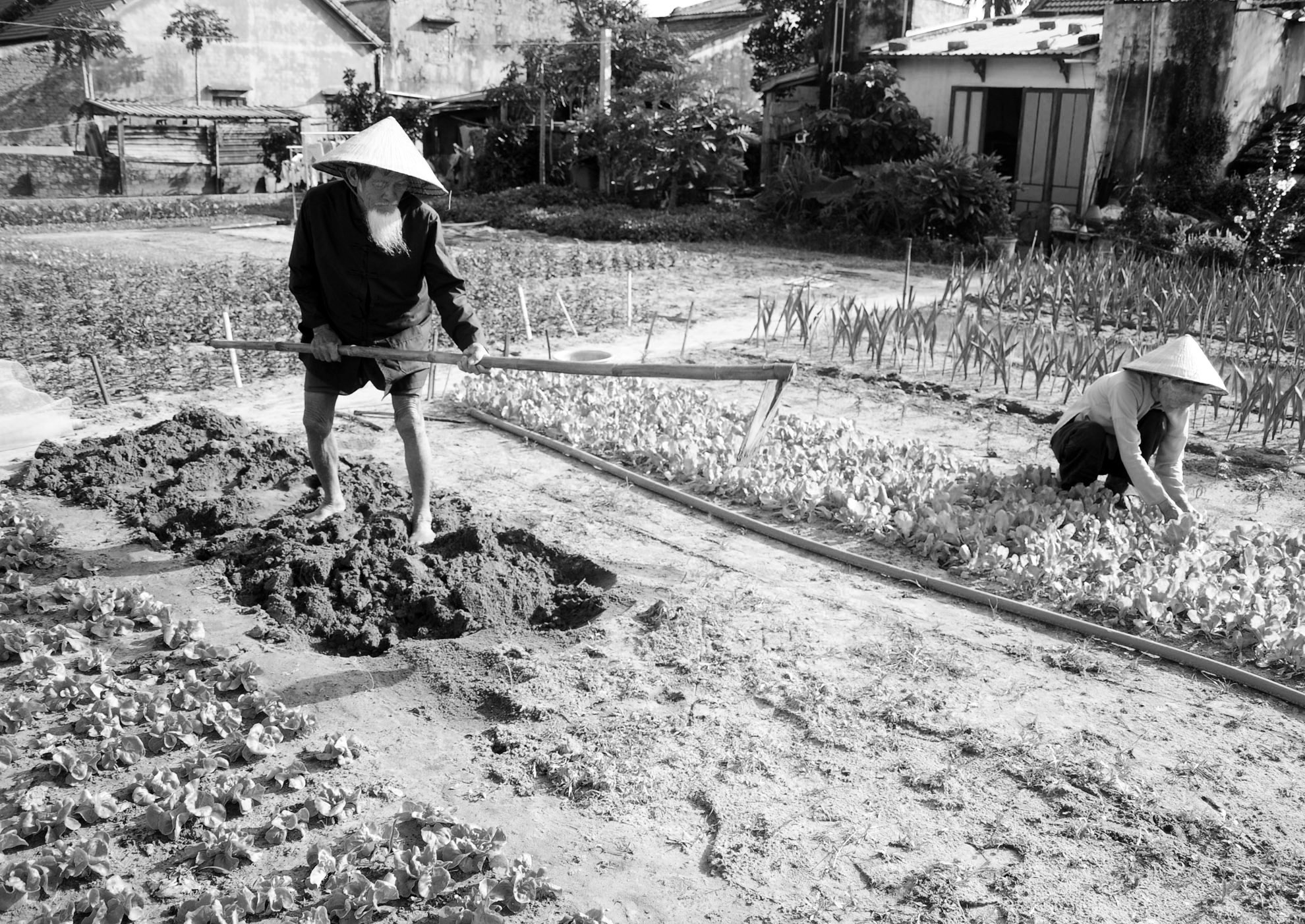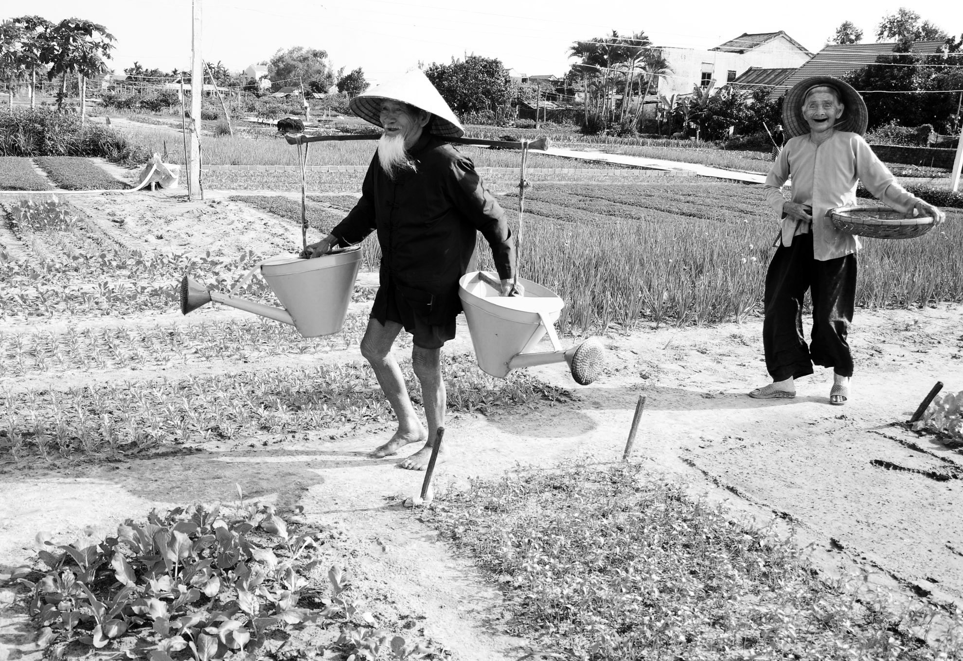 Năm nay dù cụ Sỏ đã 92 tuổi, bà Lợi 85 tuổi nhưng hàng ngày hai vợ chồng vẫn cần mẫn cuốc đất, trồng rau như niềm vui sống bình dị tuổi xế chiều. Người dân địa phương hay gọi cặp vợ chồng này là "bô lão tình già" bởi họ gắn bó với công việc này nhiều năm nhất ở Hội An. |