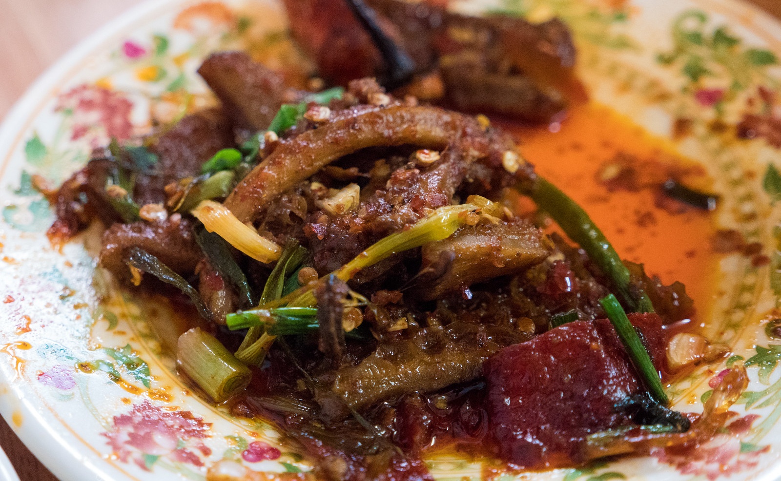 Lòng bò goep nằm trong số những món ăn được ưa thích ở Bhutan. Với kết cấu dai dai, lòng bò có thể được xắt lát, xào chung với ớt khô, ớt bột, hành, một ít rau... cho ra món ăn mang hương vị đặc trưng của ẩm thực Bhutan. Ảnh: Migrationology. |