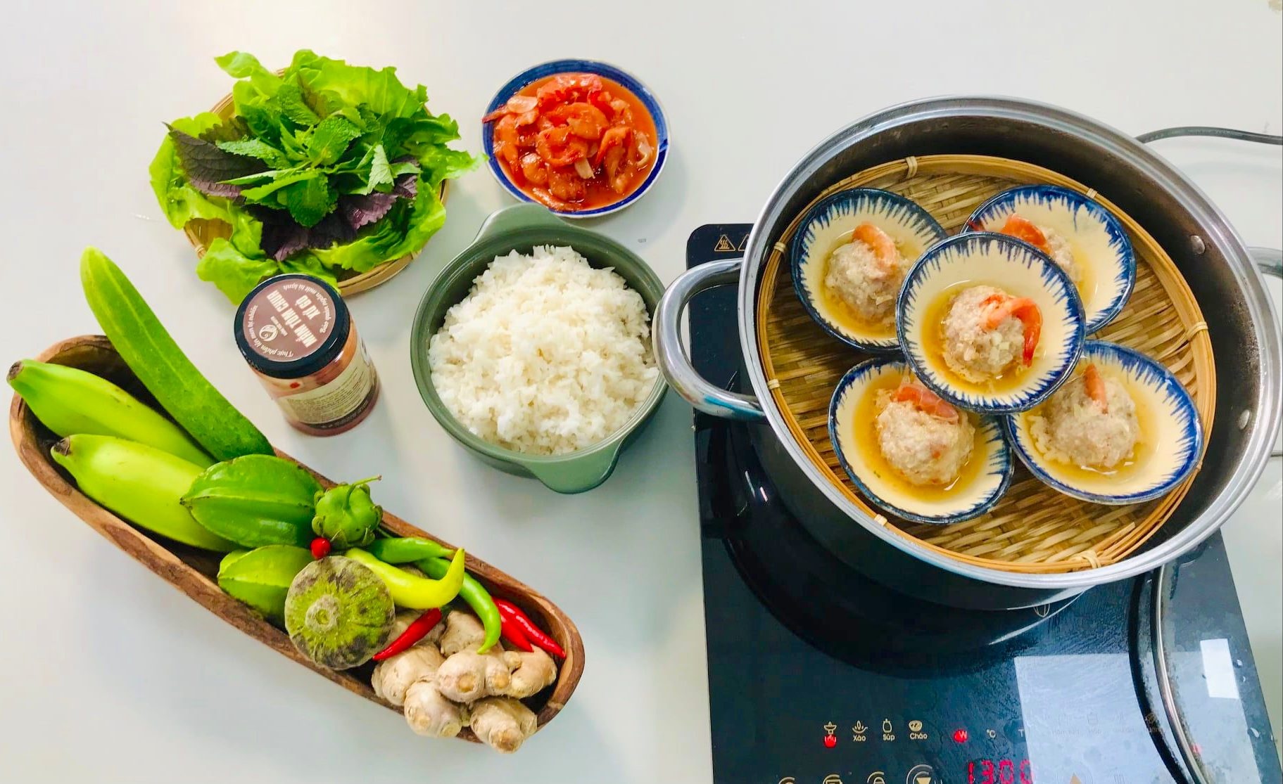 Chị cho biết mắm chưng của người miền Tây thường sử dụng mắm cá linh bằm (hoặc mắm cá chốt, mắm cá sặc, mắm ớp) và trộn với thịt nạc xay, thêm trứng, gia vị. Xíu mại cũng làm từ thịt xay, trộn cùng củ hành và các gia vị, vo viên vừa ăn rồi hấp lên là dùng được ngay. Món chả viên tôm chua chính là sự kết hợp của hai cách chế biến quen thuộc này.