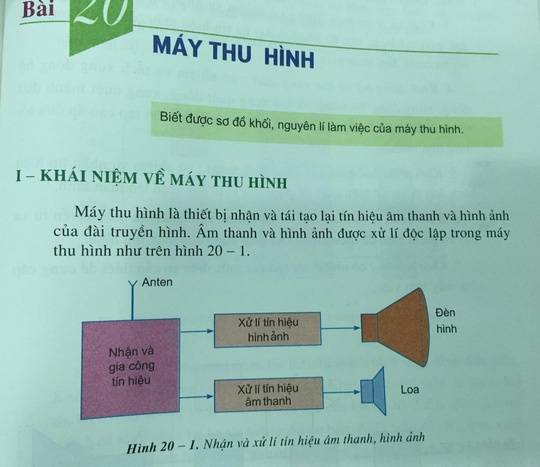 Một giáo viên khác dẫn chứng trong chương trình môn công nghệ lớp 12, ở bài máy thu hình, SGK ghi khái niệm về máy thu hình là thiết bị nhận và tái tạo âm thanh và hình ảnh của đài truyền hình. Âm thanh và hình ảnh được xử lý độc lập trong máy thu hình.