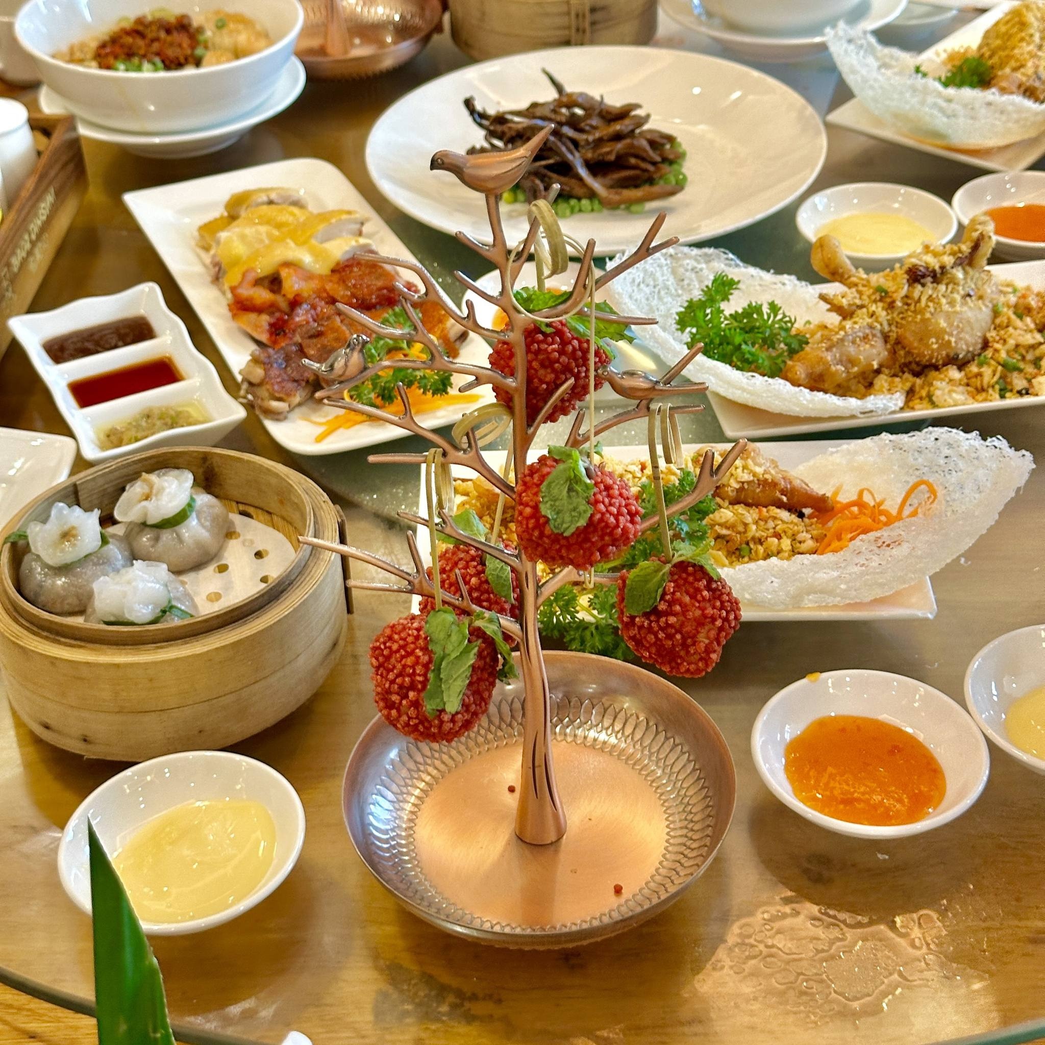 Bên cạnh thực đơn dimsum đa lựa chọn, hè này, nhà hàng ra mắt món điểm tâm mới Lệ Chi Kim Sa. Phần vỏ được tạo hình công phu từ loại bột đặc biệt giúp món ăn hệt như quả vải và nhân được làm từ tôm tươi kết hợp trứng muối. Cảo vịt quay túi tiền hay mì cua Thượng Hải cũng là những gợi ý đáng thử.