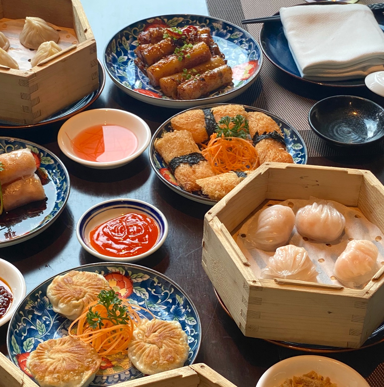 Món chủ đạo của nhà hàng là xiao long bao (tiểu long bao hay bánh bao trong lồng nhỏ) đa dạng vị gồm hải sản vi cá, nấm truffle, cua tuyết, sốt X.O, trà xanh...