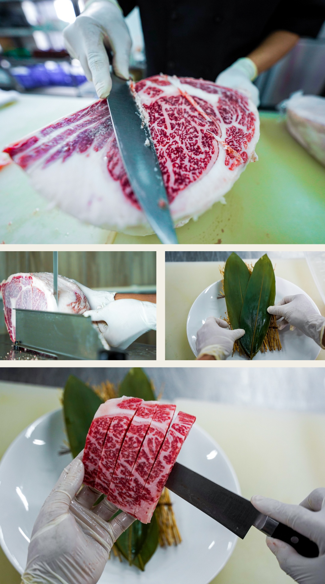 Lý giải về mức giá đắt đỏ này, đầu bếp cho biết nguyên liệu bò được lấy từ phần thăn nội (Tenderloin) ngon và hiếm nhất của bò Kobe. Phần thịt mà mỗi con bò chỉ có khoảng 3-4 kg. Chúng có những lớp vân mỡ cẩm thạch đẹp mắt và hương vị mềm, đậm đà.