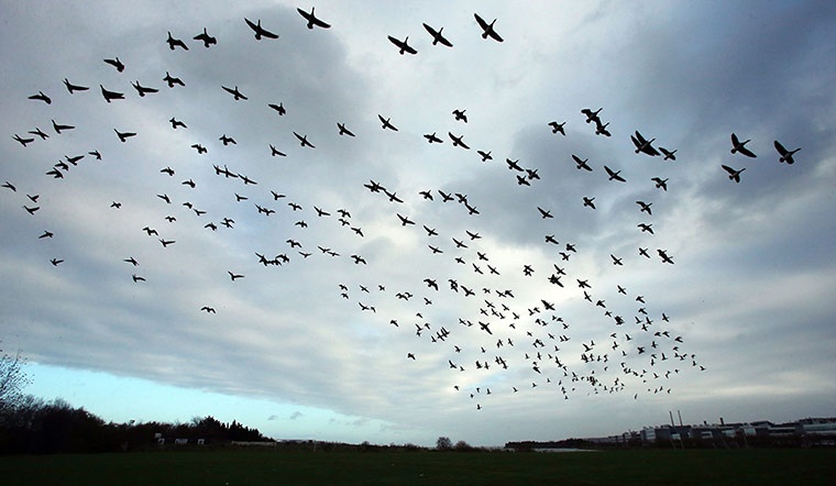 | Ngỗng trời Branta bay gần vịnh Dublin. Ảnh: PA |