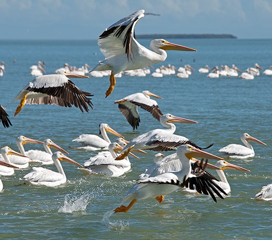 | Bồ nông trắng bay lên trong công viên quốc gia Everglades của Mỹ. Ảnh: AP |