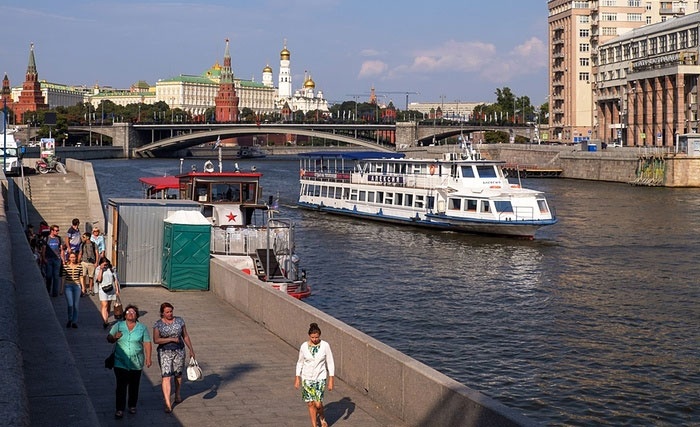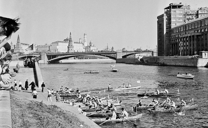 Một cuộc đua thuyền trên sông Moscow năm 1963. Bãi cỏ năm xưa nhường cho con đường lát gạch khang trang. Ảnh: TASS/ Corbis
