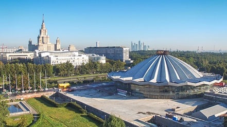 Rạp xiếc Great Moscow trên đại lộ Vernadsky đang trong quá trình xây dựng năm 1971 và vẻ trang hoàng hiện tại. Ảnh: TASS/ Barcroft Media