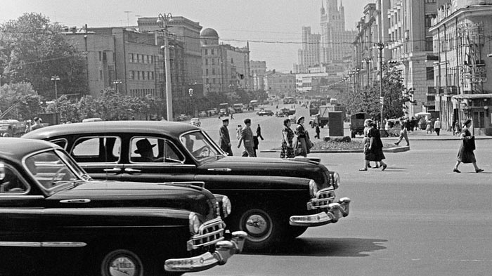 Quảng trường Mayakovsky ở Moscow năm 1954 và 2015. Khung cảnh không thay đổi nhiều nhưng nhiều loại mẫu xe ôtô mới đã chạy qua địa danh này. Ảnh: TASS/Corbis