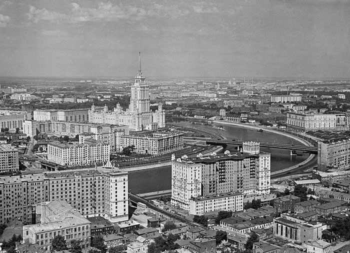 Khách sạn Ukraine, sông Moscow và cầu Novoarbatsky năm 1960 và 2015.