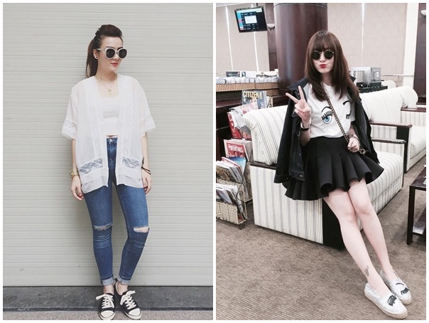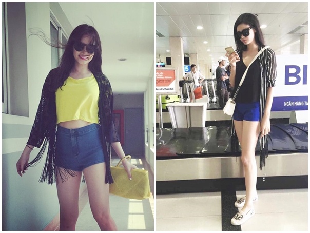 Trong khi đó, Hoàng Thùy Linh chuộng phong cách năng động, cá tính. Nữ ca sĩ diện áo crop-top và quần shorts ngắn khoe đôi chân thon. Áo denim bên ngoài vừa có tác dụng tạo phong cách vừa bảo vệ làn da dưới ánh nắng gay gắt.